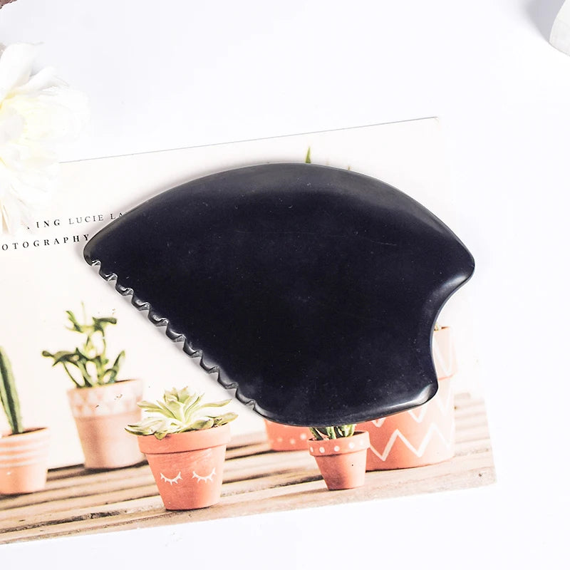 Mejora la circulación y tonifica tu rostro con la gua sha de obsidiana dentada. Sus bordes estimulan la piel en profundidad, reducen arrugas y relajan músculos, dejando una piel más firme y luminosa.